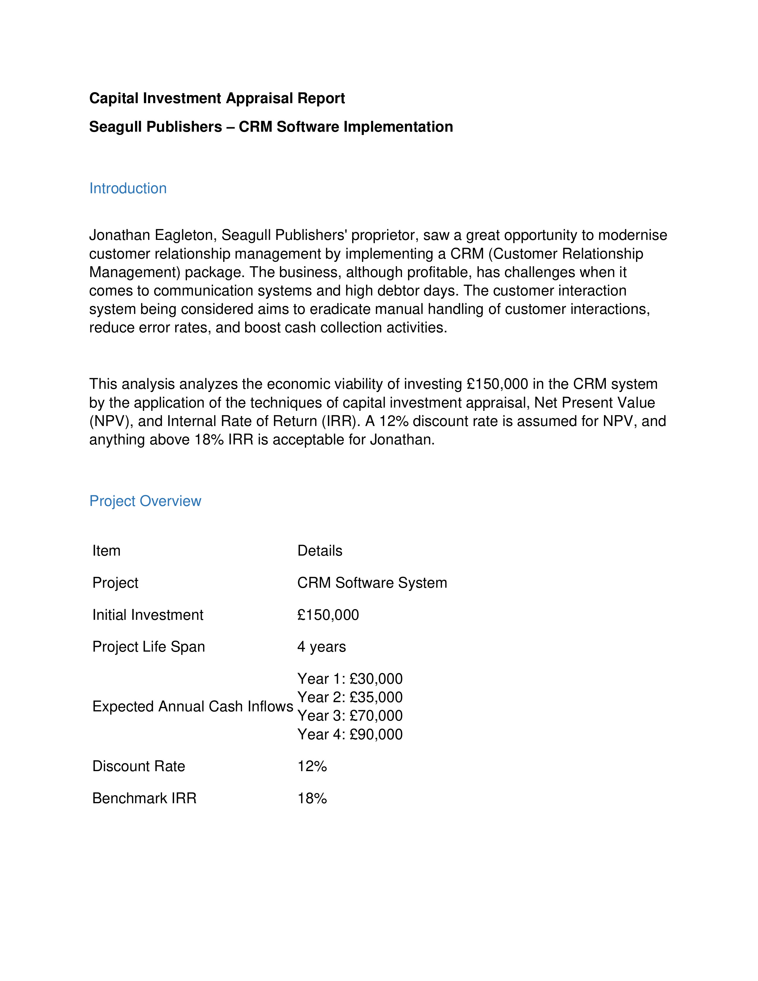 This analysis analyzes the economic viability of invest...